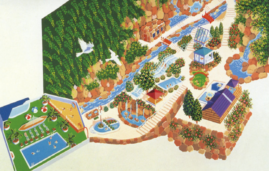 - 当時としては珍しい温水プール付きの純和風旅館・天城荘を譲り受けて営業を開始。