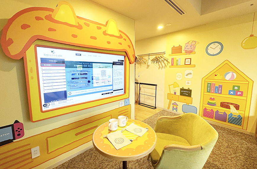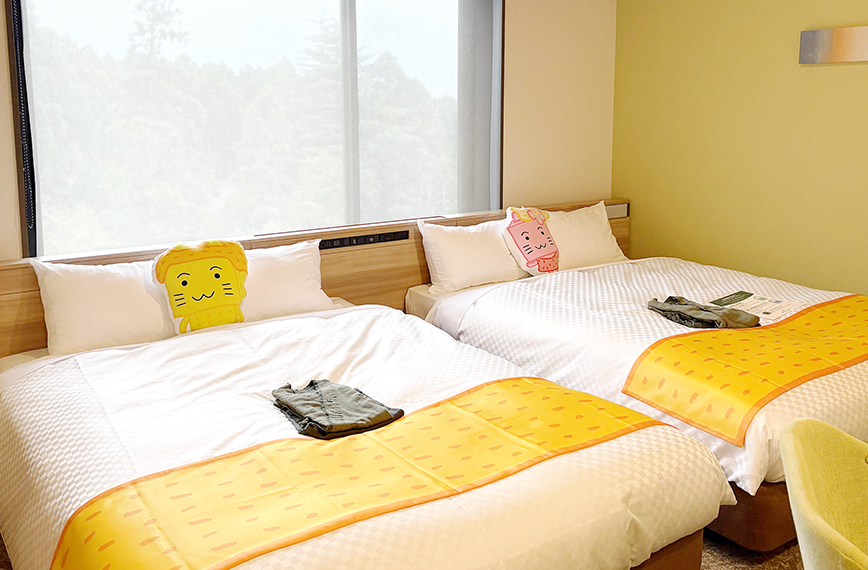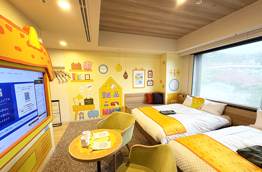 客室に入ると、そこにはボザッピィデザインを基調とした可愛らしい装飾がいっぱい!まるでボザッピィのおうちに遊びに来たような気分を味わえます。