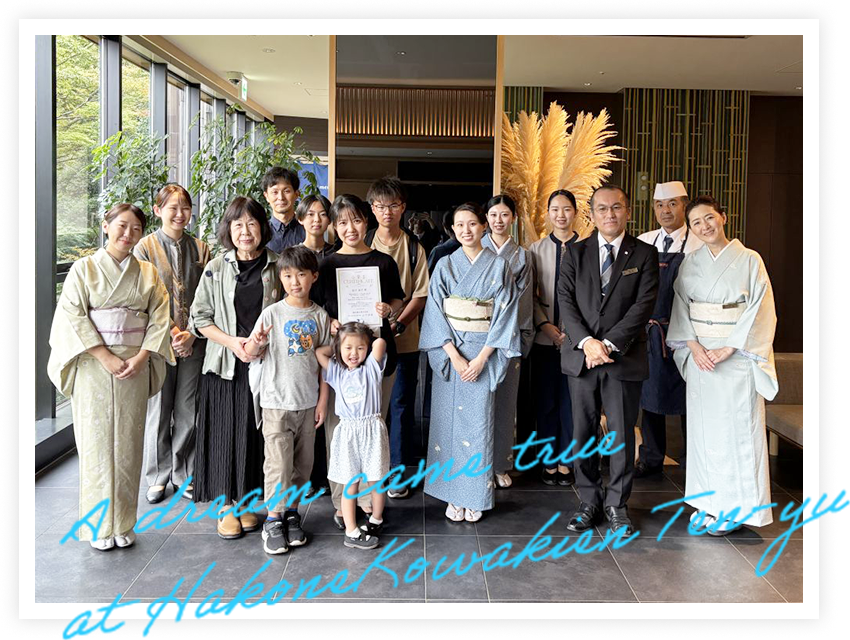 「7つの夢旅」第三の夢は、「箱根小涌園 天悠」での感謝のサプライズ。母として、人として尊敬するお義母さまに感謝を伝えるため、家族がホテルスタッフとしてお迎えする特別な演出を実現しました。家族の想いが詰まった感動の時間をレポートします。