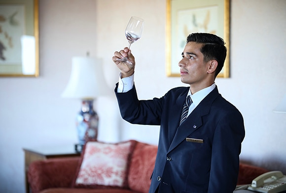 客室の清掃チェック、客室メンテナンス、VIPの部屋の仕上げなどを学ぶ