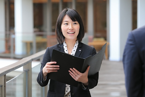 実は、以前は、出産後も仕事を続けるのはとても無理だと思っていたのですが、実際、その立場になってみると、できない理由がないことに気付きました。当社は育児休暇制度が整っており、短時間勤務も可能です。子育て中の先輩にも話を聞き、とても心強かったのを覚えています。