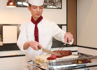 美しいイルミネーションに彩られた観覧車を中心に広がる、横浜随一のみなとみらいの眺望とともに、お料理の数々をお楽しみいただける、横浜桜木町ワシントンホテル ダイニング&バー「ベイサイド」では、「横浜開港祭」開催に合わせて、横浜発祥といわれる牛鍋、ドリア、ナポリタン、サンマーメンなど、ホテルシェフによる「横浜洋食」を6月のランチブッフェで、ご用意いたします。