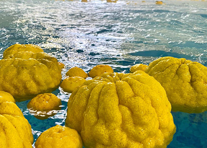 ゆず湯には本来、厄払いの禊(みそぎ)として親しまれていました。さらに冬至(本年は12月22日)にゆず湯に入ると「1年中風邪をひかない」という言い伝えもあるほど、健康に良いお風呂と言われています。