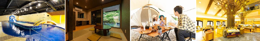 「水着で遊べるユネッサン」「裸でくつろぐ森の湯」「キャンプ&スパ 山の音」「ショップ&アミューズ たまて箱」の 4 つにゾーニングしてそれぞれの魅力を向上しました。