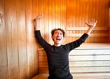 ブロワーから放たれるしんちゃんの「ぶりぶり熱波」による新感覚のロウリュ・アウフグースが登場!
