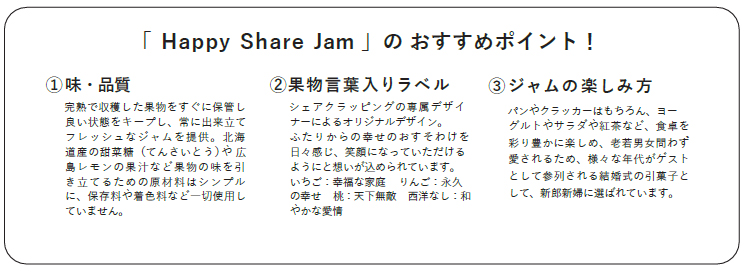 Share Clapping【 スタッフの想いから生まれた新商品 】幸せのおすそわけジャム オリジナル 引菓子「Happy Share Jam! (ハッピーシェアジャム)」