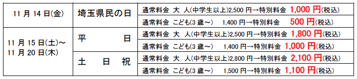 11月14日当日は入場料が1,000円ポッキリで超おトク!