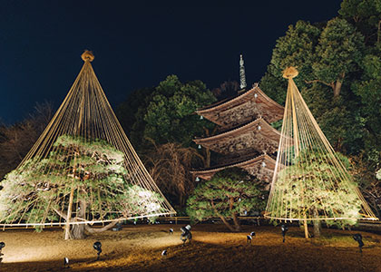 また、期間中は冬の風物詩でもある雪吊りを照らす「雪吊りライトアップ」も実施。「日本夜景遺産」にも登録されている庭園ライトアップが、穏やかな光で庭園を包み、静かな夜の景観をより美しく彩ります。