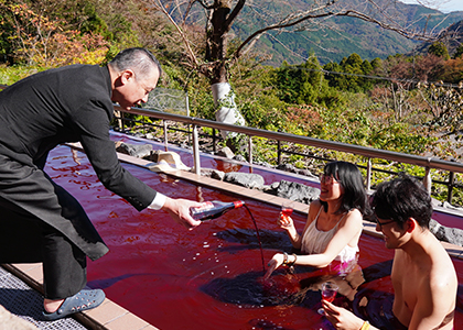 本キャンペーンでは、山梨県民の皆さま限定で、水着で遊べる温泉「ユネッサン」が通常料金の約30%OFFでご入場いただけます。さらに11月20日(木)の山梨県民の日当日は、大人(中学生以上)1名様1,000円でご入場いただける大変おトクなキャンペーンをご用意いたしました。期間中は、“お風呂を通じて世界を巡る”をテーマにしたスペシャルイベント「YUNESSUN OFURO COLLECTION」を開催しており、メキシコの死者の日をテーマにした「魂のオフロンダ」、ノルウェーの冬景色をイメージした「スノーファンタジー風呂」といった変わり風呂をお楽しみいただけます。さらに、11月20日(木)~24日(月)の5日間限定で、秋の名物イベント「ボジョレー・ヌーヴォー風呂」を開催いたします。