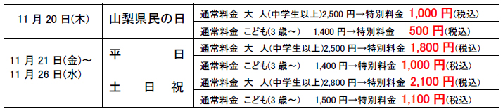 11月20日当日は入場料が1,000円ポッキリで超おトク!