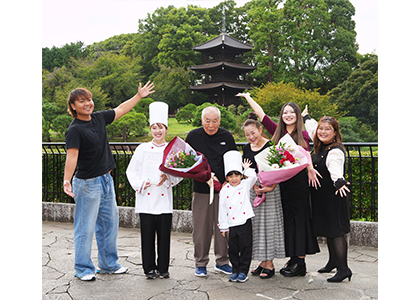 八百屋さんを営んでいたご両親。引退を機にこれからたくさんの恩返しをしたいと、ご両親には内緒で4歳の息子さんと一緒に前日からシェフの指導のもとコース料理を準備しました。