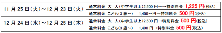 クリスマスイブと当日は入場料がワンコイン500円で超おトク!