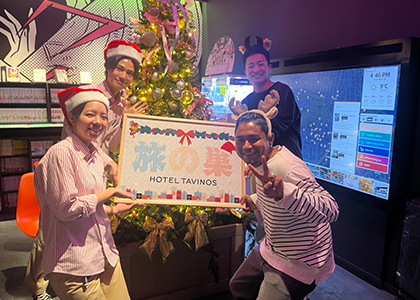 期間中は、アテンダーもクリスマスにちなんだ衣装を身にまとい、ゲストの皆さまを笑顔でお迎えいたします。世界各国がクリスマスムードで華やぐこの季節に、日本へ集った世界中のゲストとのささやかなご縁を感じることができるHOTEL TAVINOSらしい心温まる交流イベントを、存分にお楽しみください。