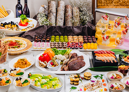 ①当日のランチ・ディナー、翌日の朝食・ランチと食べ放題・飲み放題のビュッフェが最大4食!