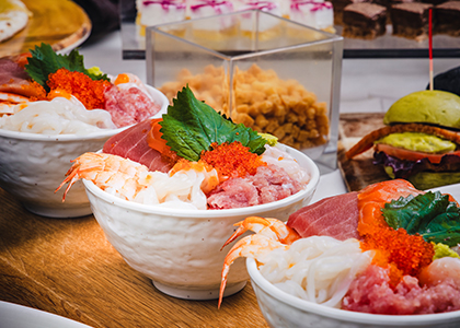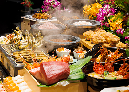 箱根ホテル小涌園ではビュッフェレストラン「フォンテンブロー」にて、ライブキッチンで仕上げる出来立てのお料理をアルコール・ソフトドリンク飲み放題付きでご堪能いただけます。人気料理の牛ステーキやシェフが 目の前で握るお寿司、伝統の小涌園ラーメンや小涌園カレー等をどうぞお楽しみください。