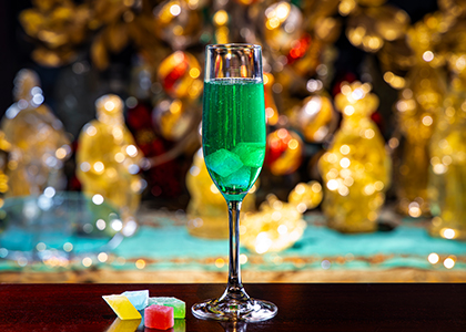 箱根の美しい緑と「箱根ガラスの森美術館」のガラスの輝き、水の都ヴェネチアをイメージした2種類のカクテルをご用意。彩を添える琥珀糖が入った煌めく冬の夜にふさわしい、華やかな一杯です。