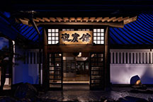 「迎賓館」は、1875年、宮大工により建築された庄屋屋敷です。イギリスから輸入された波板鉄板で葺かれた屋根の建物となり、松や栗などの建材を使用した重厚な造りです。2階は養蚕のための60畳もの広大な部屋となっており、床は通気性を高める為、竹張りになっていました。現在は、当時の梁や柱を残したまま、2016年5月より鉄板焼・しゃぶしゃぶレストランとして営業しています。歴史ある空間で特別な時間をお楽しみいただいております。